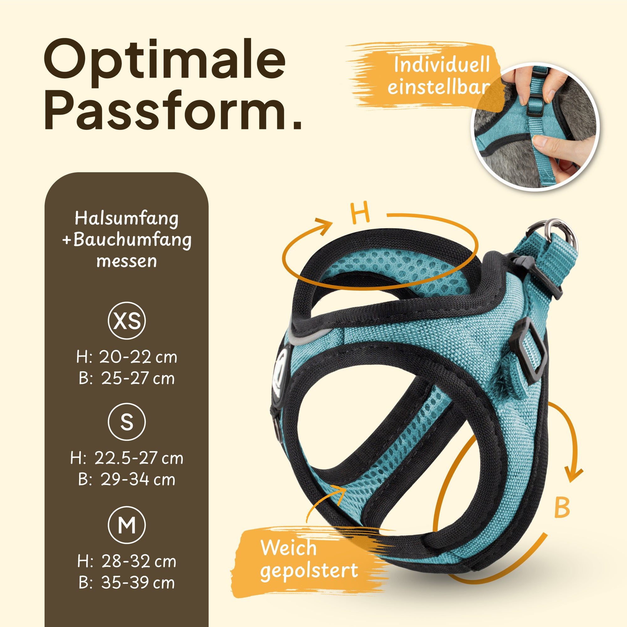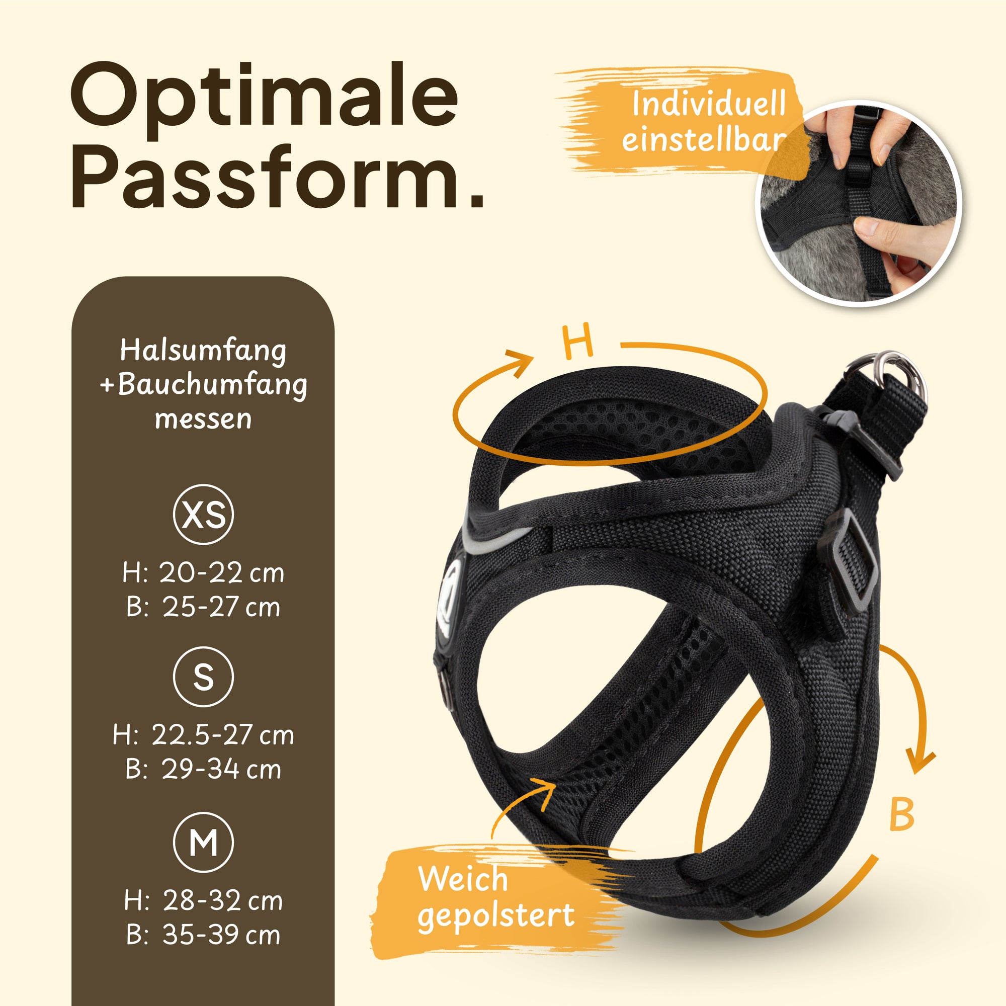 • Einfaches An- und Ausziehen: Die durchdachte Konstruktion ermöglicht ein schnelles und stressfreies Anlegen des Geschirrs.